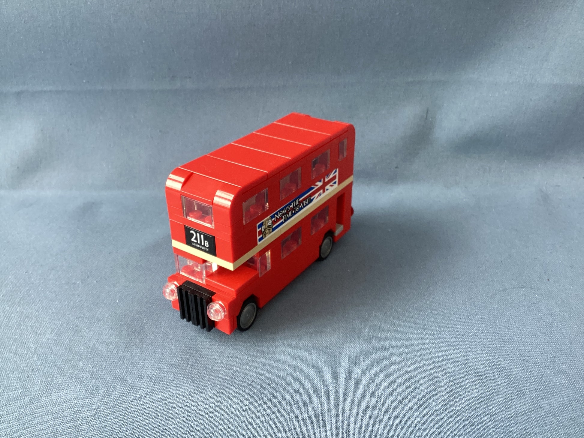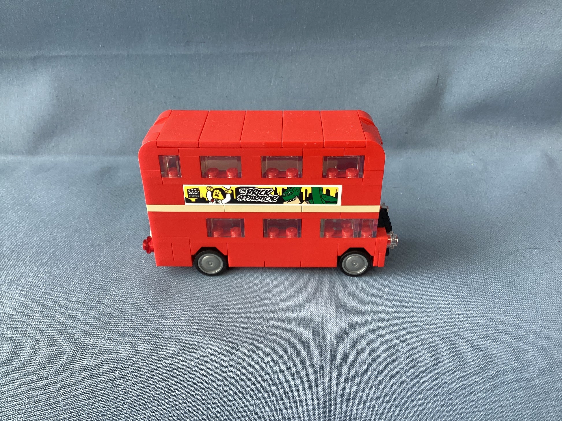 Recreate a classic London landmark on a smaller scale with this charming mini double-decker bus. Featuring working wheels, transparent windows, light elements, and stickered details like route numbers and advertising banners, it’s a compact and fun build designed to delight fans of London-themed LEGO Creator sets. Measures approximately 6 cm high, 11 cm long, and 3 cm wide .
