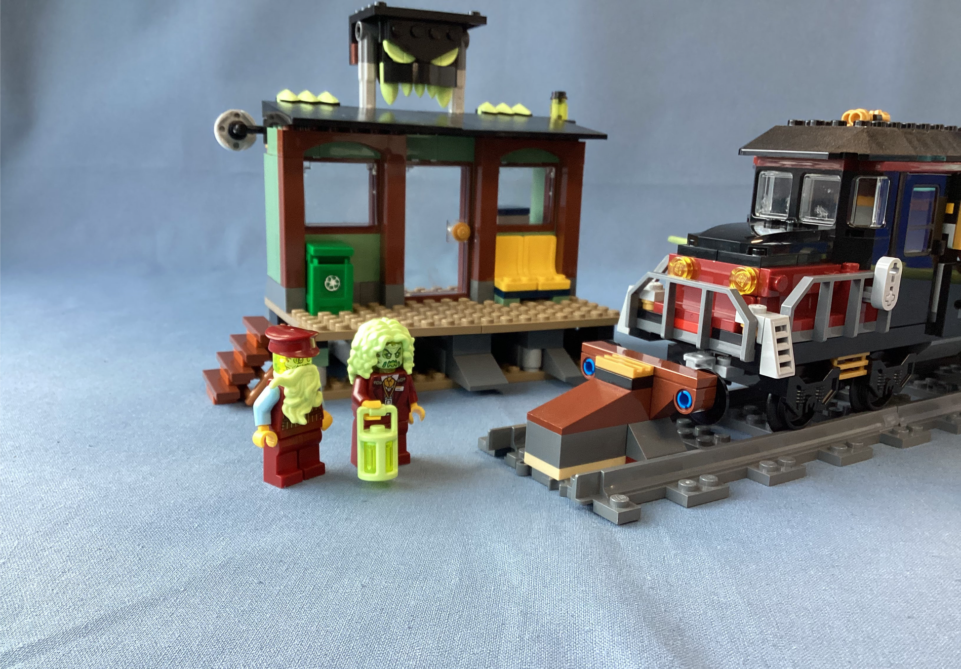 • Features a buildable ghost train with locomotive, passenger car, and ghost wings